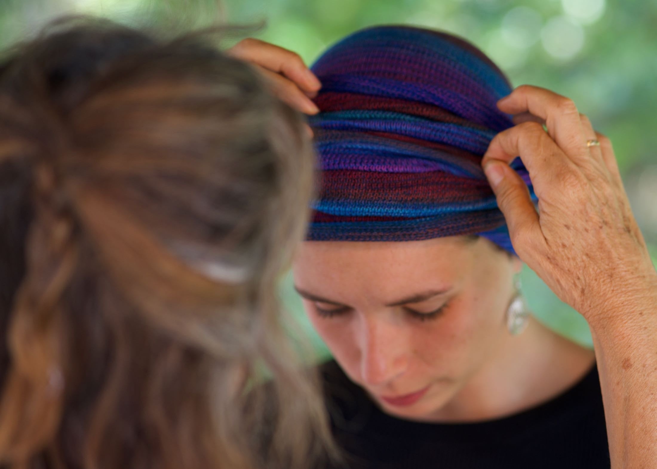 You can find a detailed video of how to wear our beanie wraps in our "How to Wear" tab or by clicking the link: /pages/how-to-wear-a-beanie-wrap